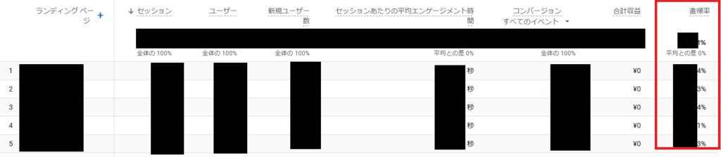 サイトの質を上げるために、各ページの直帰率も確認しましょう。